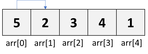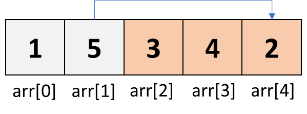 배열의 마지막 원소의 값이 두 번째 원소의 값보다 작기 때문에 교환해줍니다.