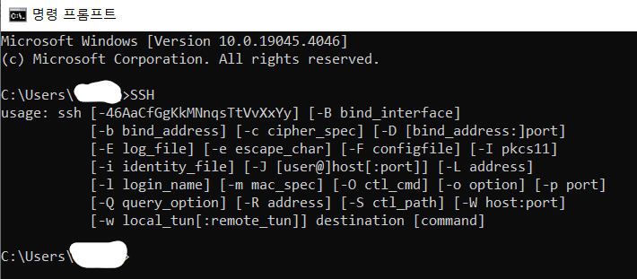 Windows cmd 에서 'ssh' is not recognized as an internal or external command, operable program or batch file.와 같은 문구가 나온다면 2가지 상황을 의심할 수 있다.